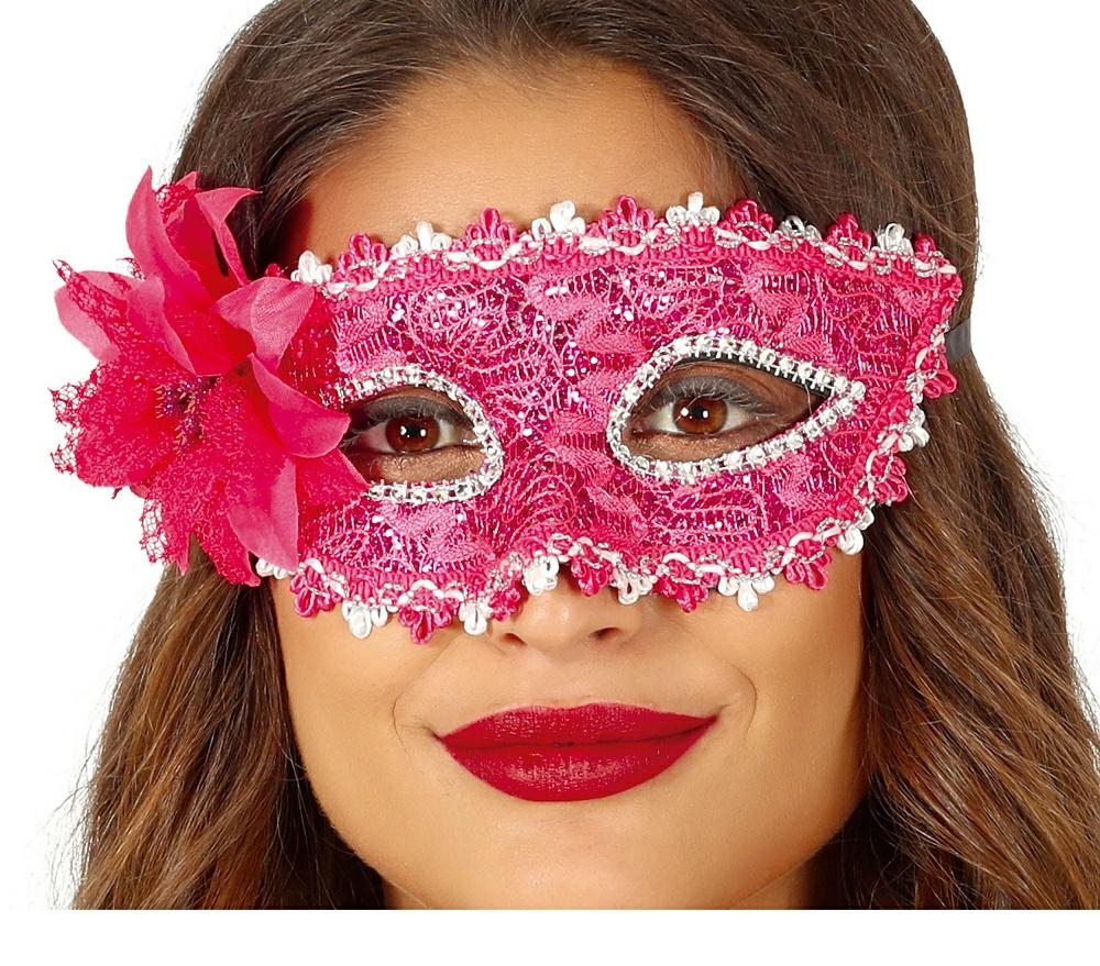 Maska Wenecka różowa z kwiatem 12946