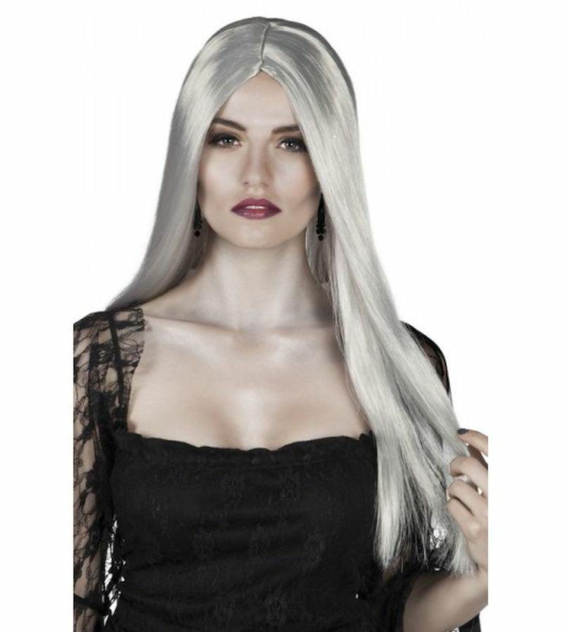 Peruka długa bez grzywki szara 86082