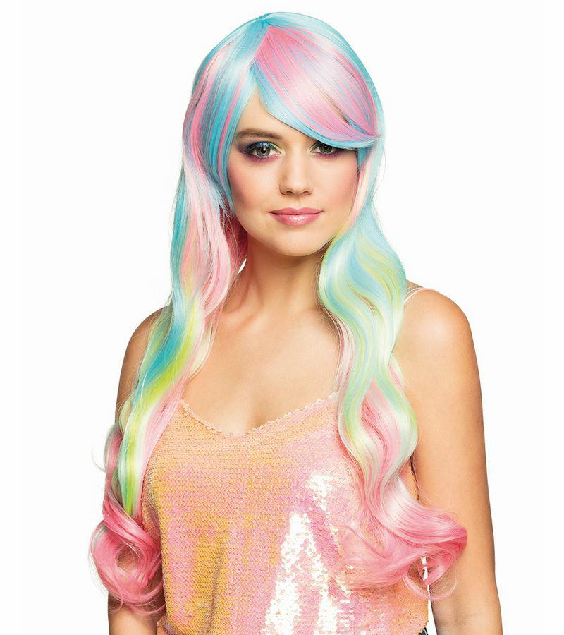 Peruka długa tęczowa 85047